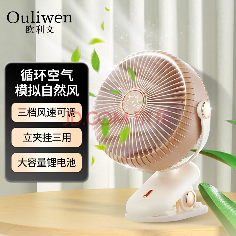 欧利文小风扇桌面床上用夹子USB充电静音三档 便携式迷你大风力办公室宿舍360度旋转风宝 米白¥34.96 已售:0