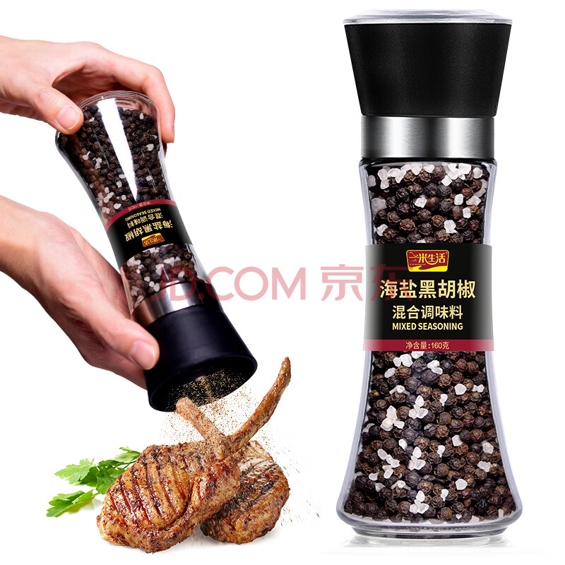一米生活 海盐黑胡椒粒研磨瓶160g 手动研磨 鸡胸肉西餐牛排烧烤调味料¥19.8 已售:0