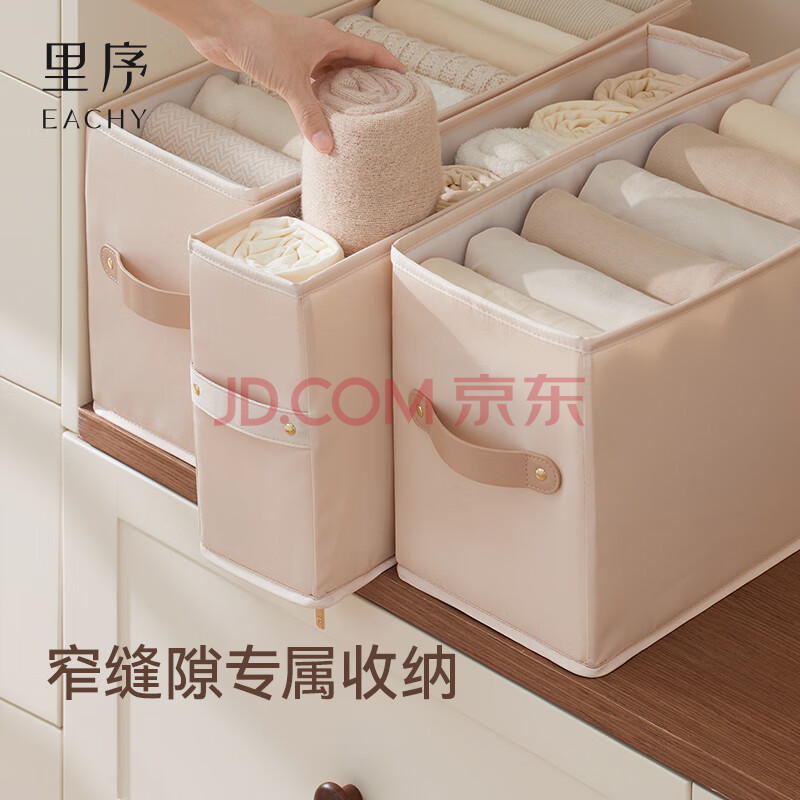 EACHY窄长型衣物收纳箱裤子毛衣收纳神器衣柜分格收纳盒-杏色小号窄款¥29 已售:0