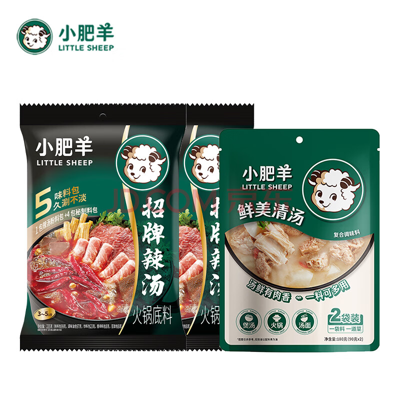 小肥羊调料(招牌辣汤火锅底料235g*2袋+鲜美清汤复合调味料180g*1袋)¥48.2 已售:0