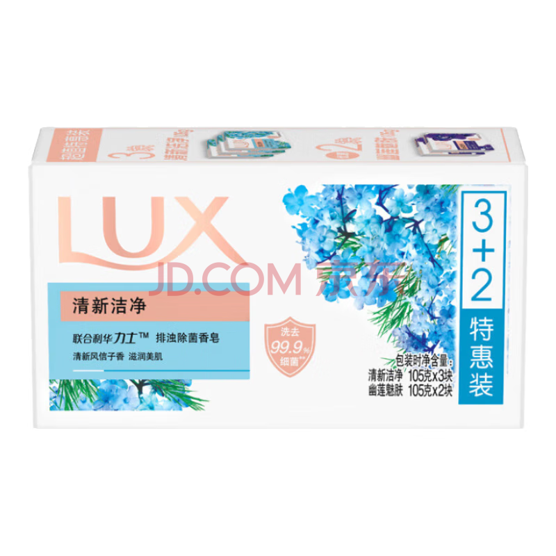 力士(LUX)排浊除菌香皂(清新+幽莲) (3+2)X105G¥15.9 已售:0