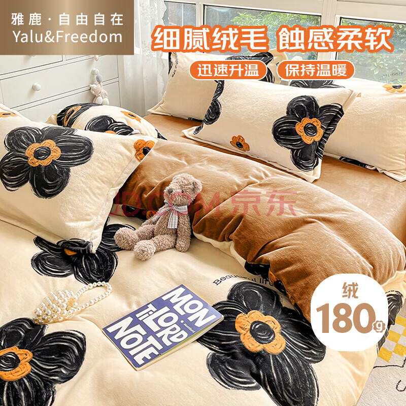 雅鹿·自由自在牛奶绒三件套秋冬季学生宿舍1.2/1.5米床 被罩150*200cm 梵克花¥158.5 已售:0