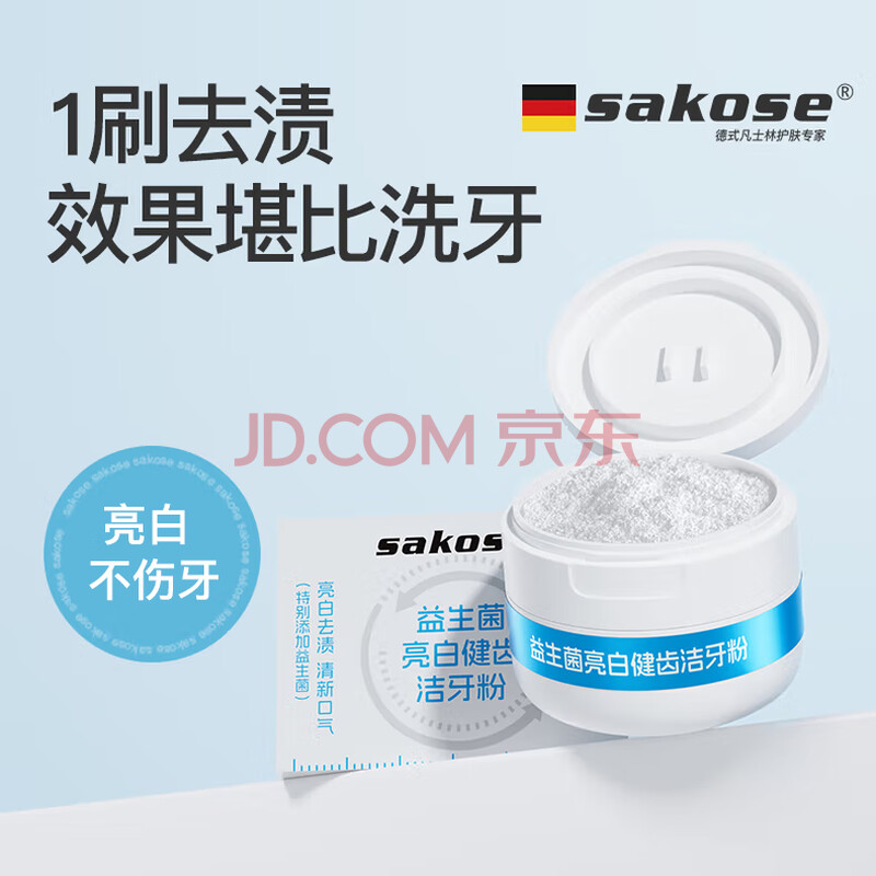 sakose益生菌亮白健齿洁牙粉70g清新口气改善黄牙烟渍美牙膏粉炫白牙垢¥49.9 已售:0